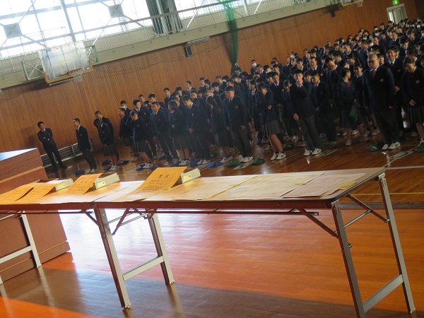 令和2年1月8日(水)、始業式の前に表彰伝達式を行いました。