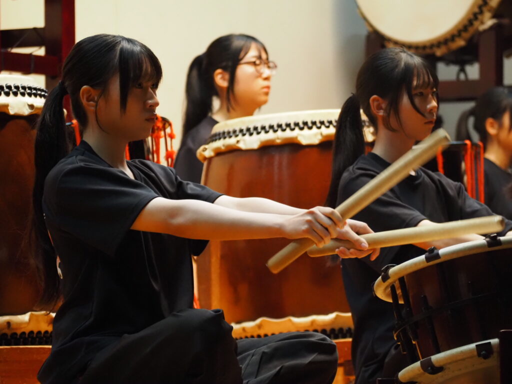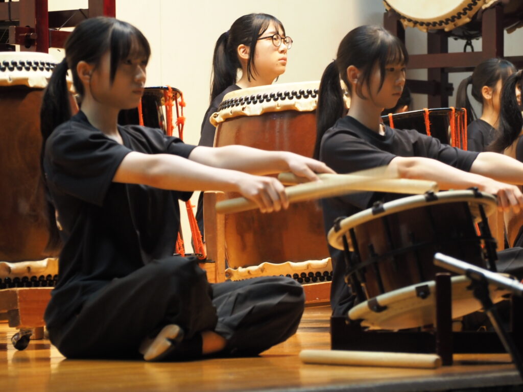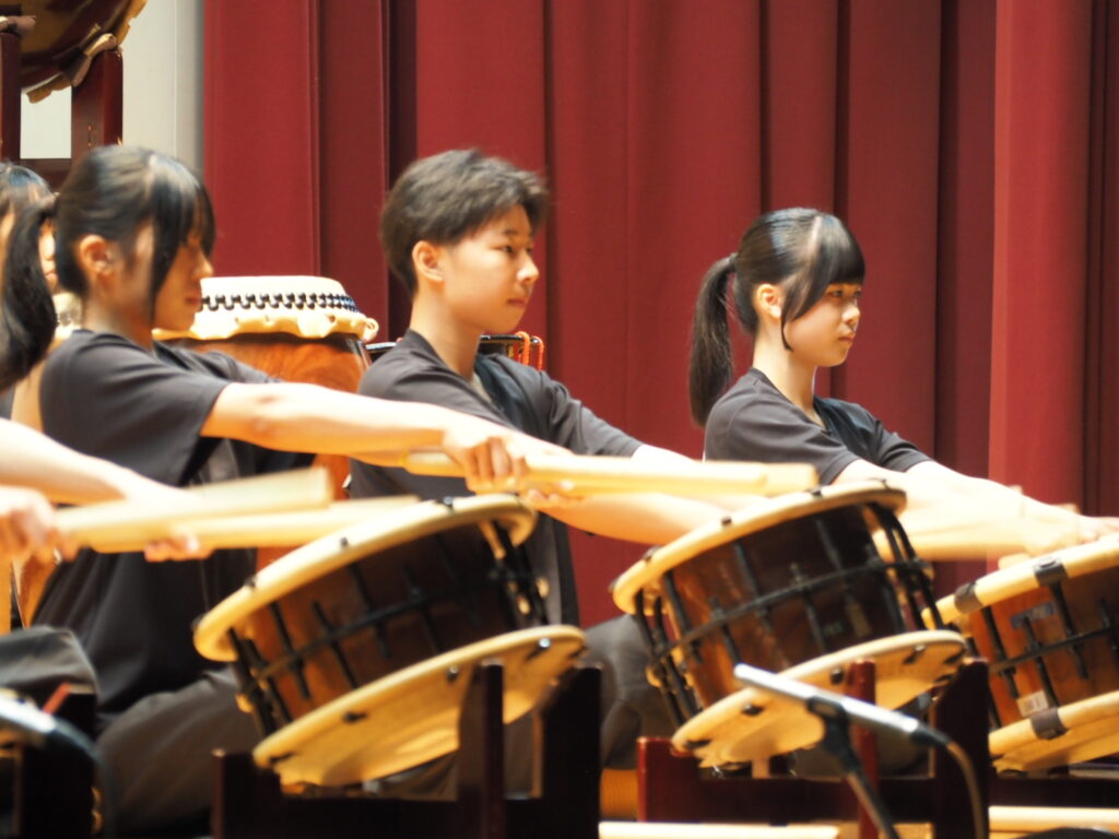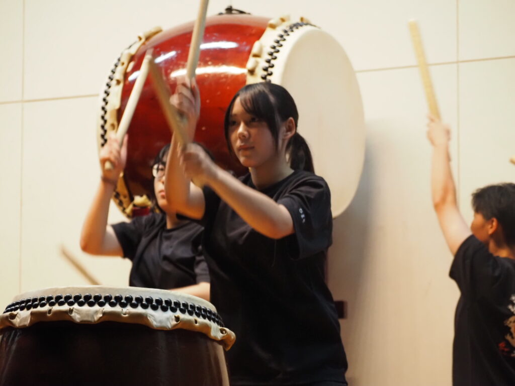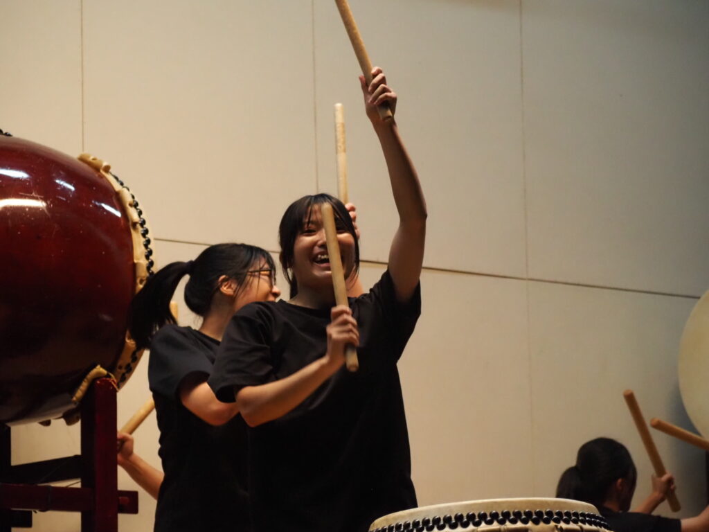 普段は地域の行事で活躍する和太鼓部ですが全校生徒の前でも素晴らしい演奏を披露してくれました