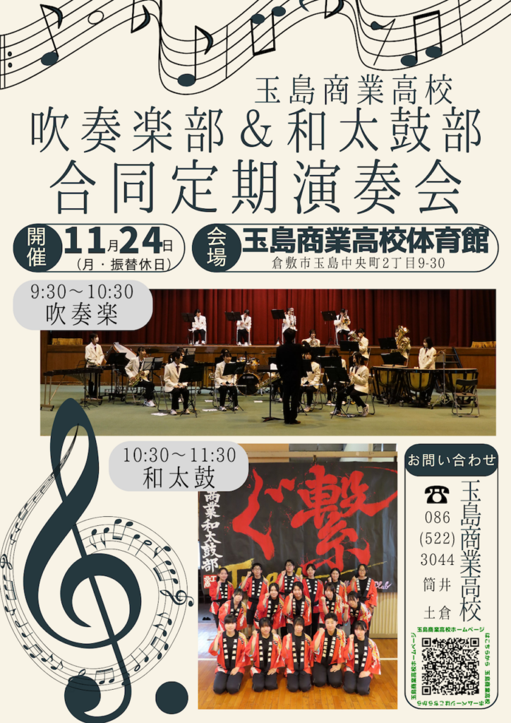 今年度の吹奏楽部&和太鼓部合同定期演奏会は以下の日程で開催します