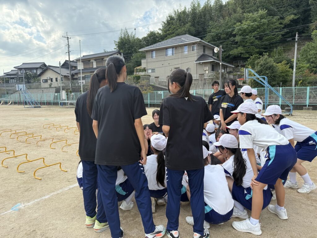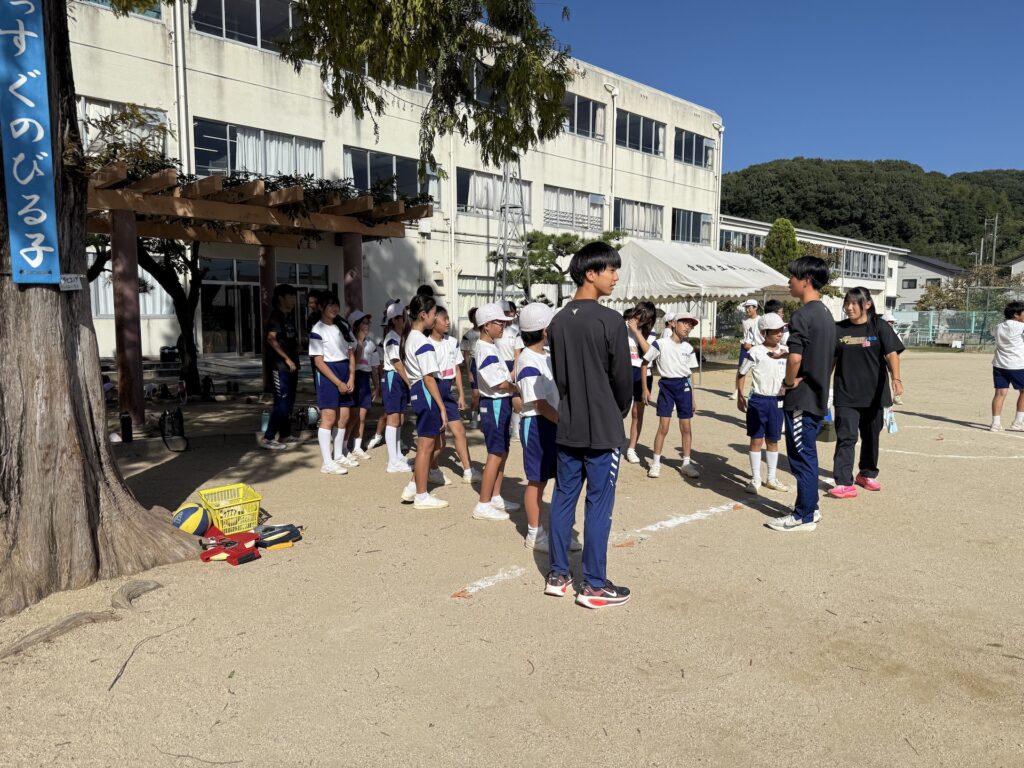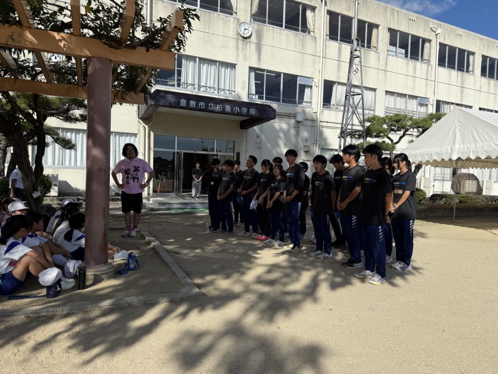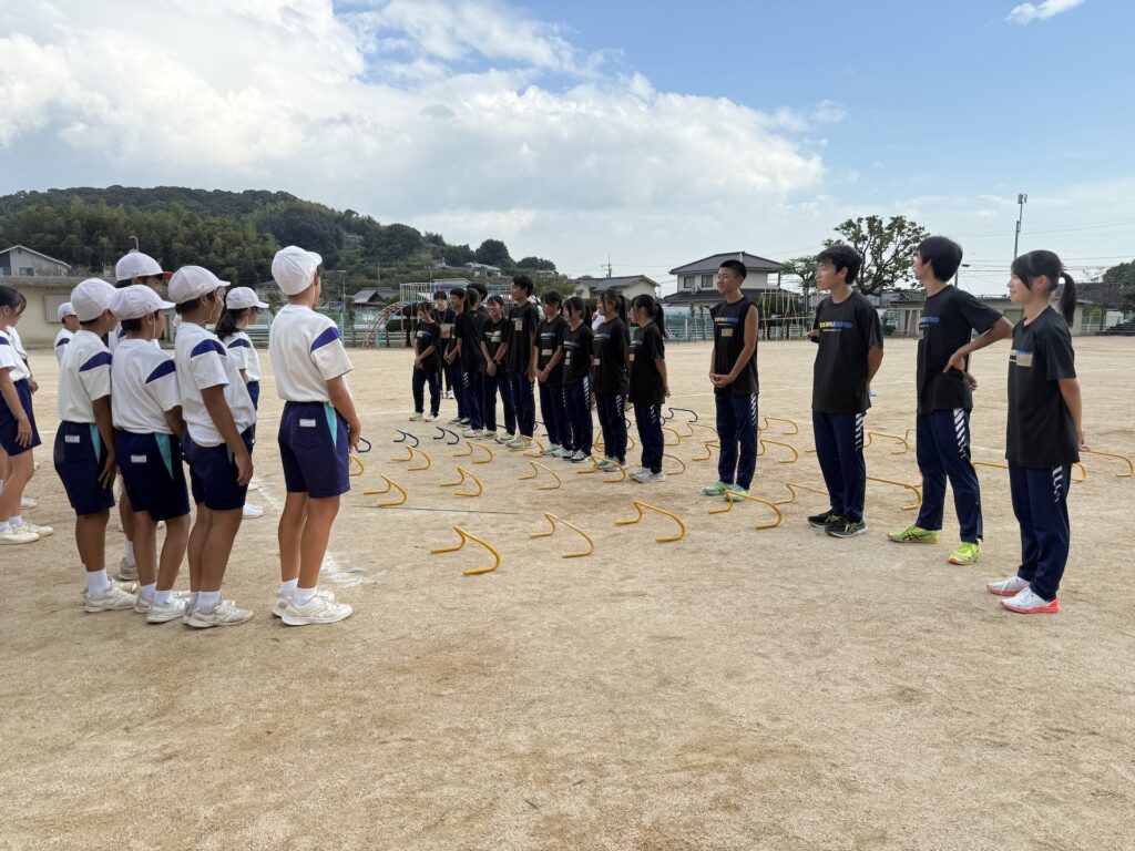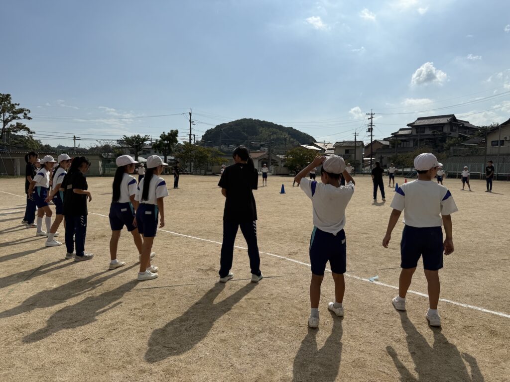今年度も小高連携事業として陸上競技部が倉敷市立柏島小学校へ派遣され体育の陸上競技について指導補助を行いました