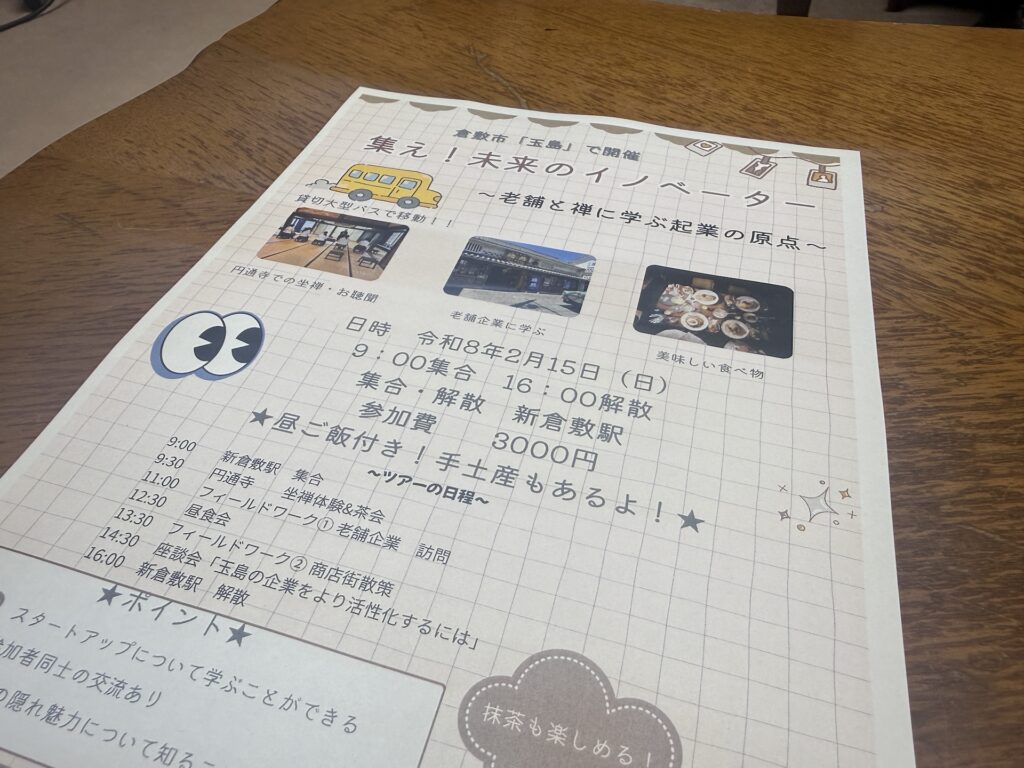 玉島魅力発信プロジェクトの実現に向けて玉島ツアーの企画ですが概要が完成したためツアーに参加していただく企業について紹介していただくお願いに伺いました