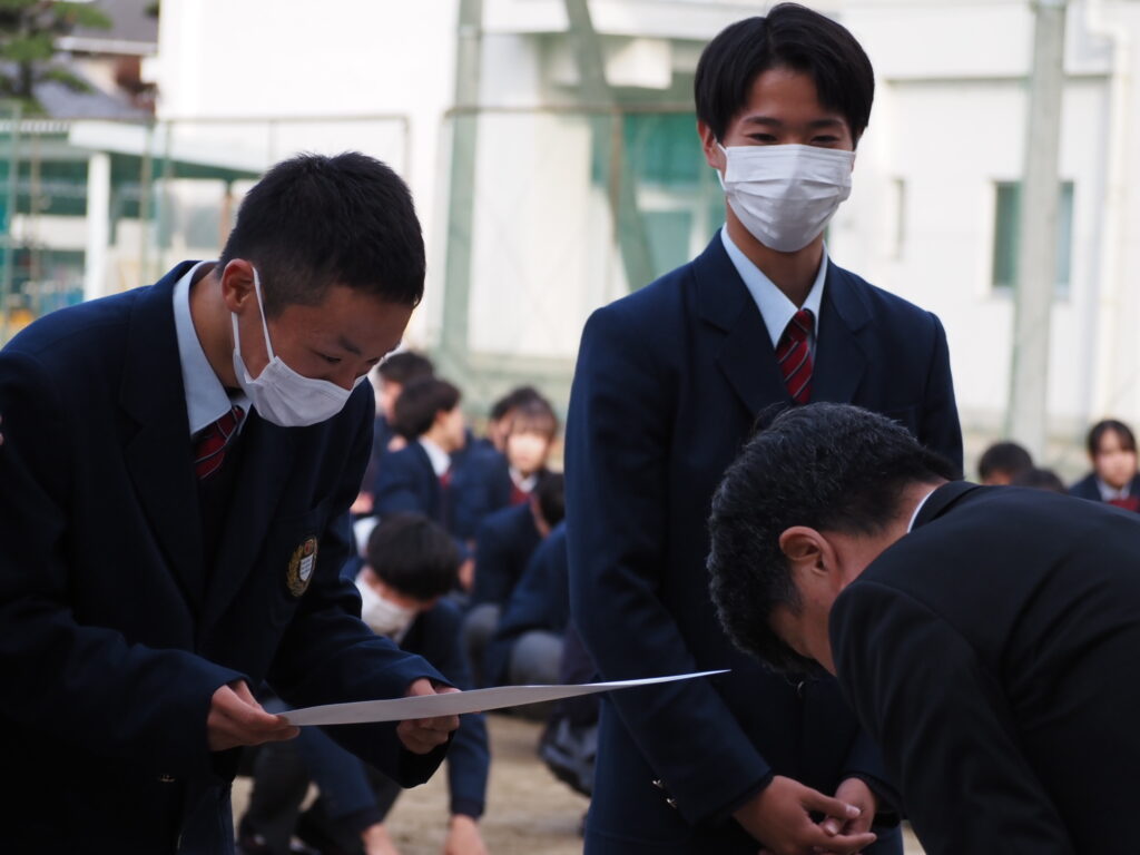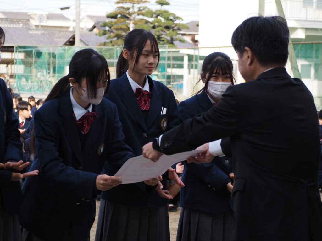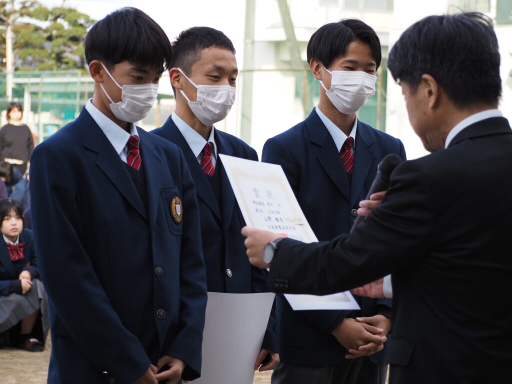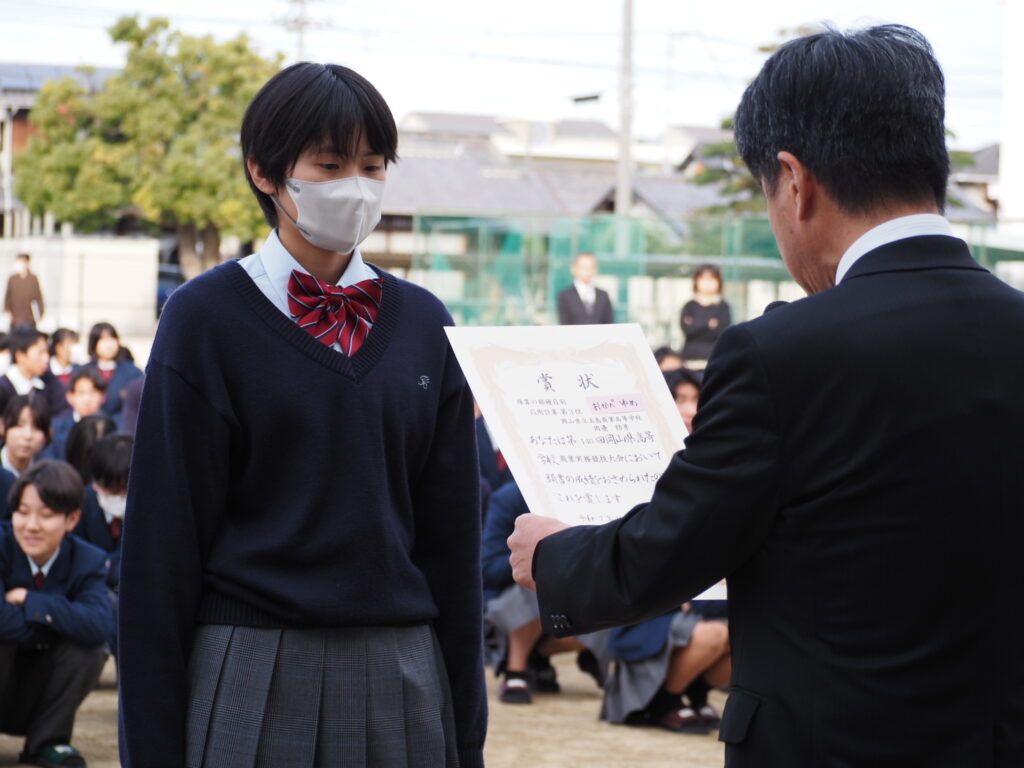 陸上競技部と珠算部の表彰伝達と中国大会に向けての壮行式が行われました