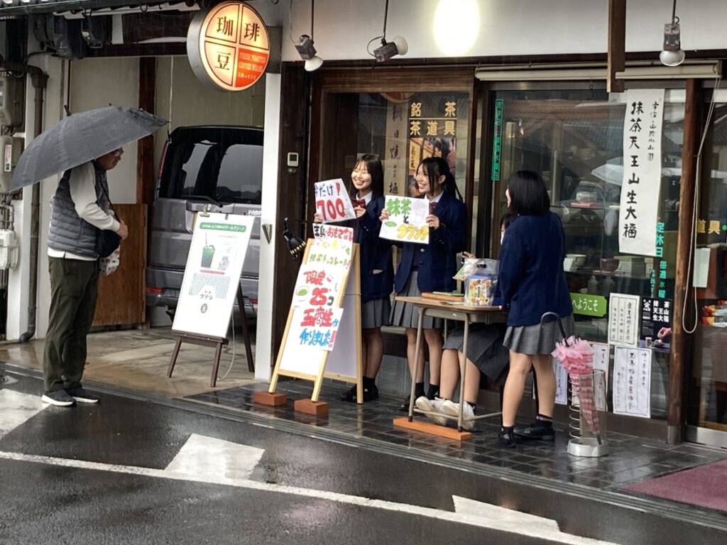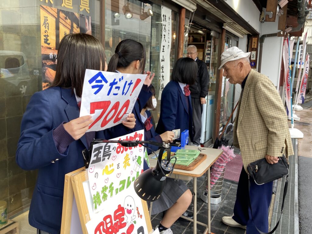 多くの皆様に足を止めていただき玉島の写真をご覧いただき山陽学園大学 神田ゼミと共同開発した「chocolate premium okayama」の玉島抹茶バージョンを販売しました
