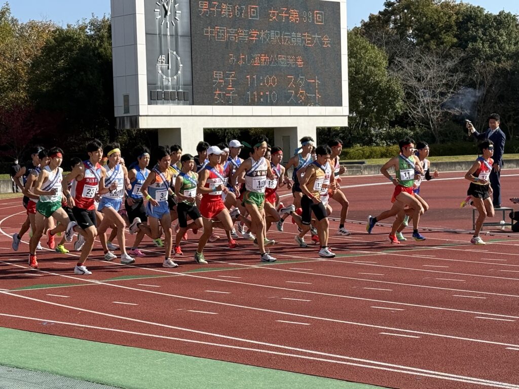 岡山県高校駅伝で出場権を5位で獲得した男子が2時間20分切りと県大会より順位を上げることを目標にレースを進めました