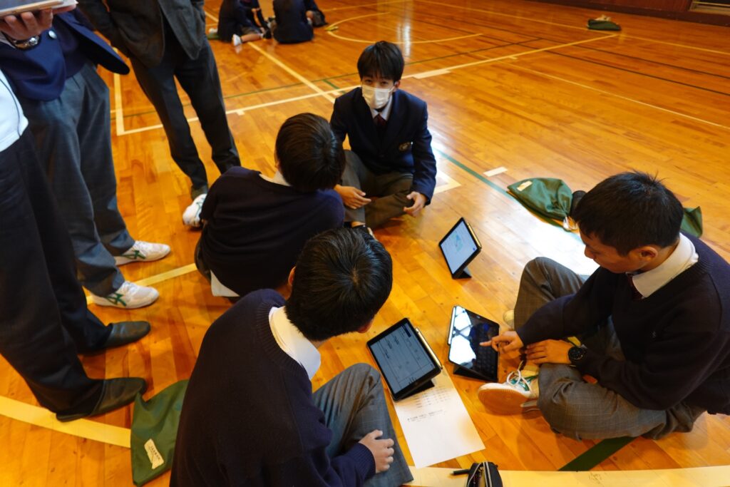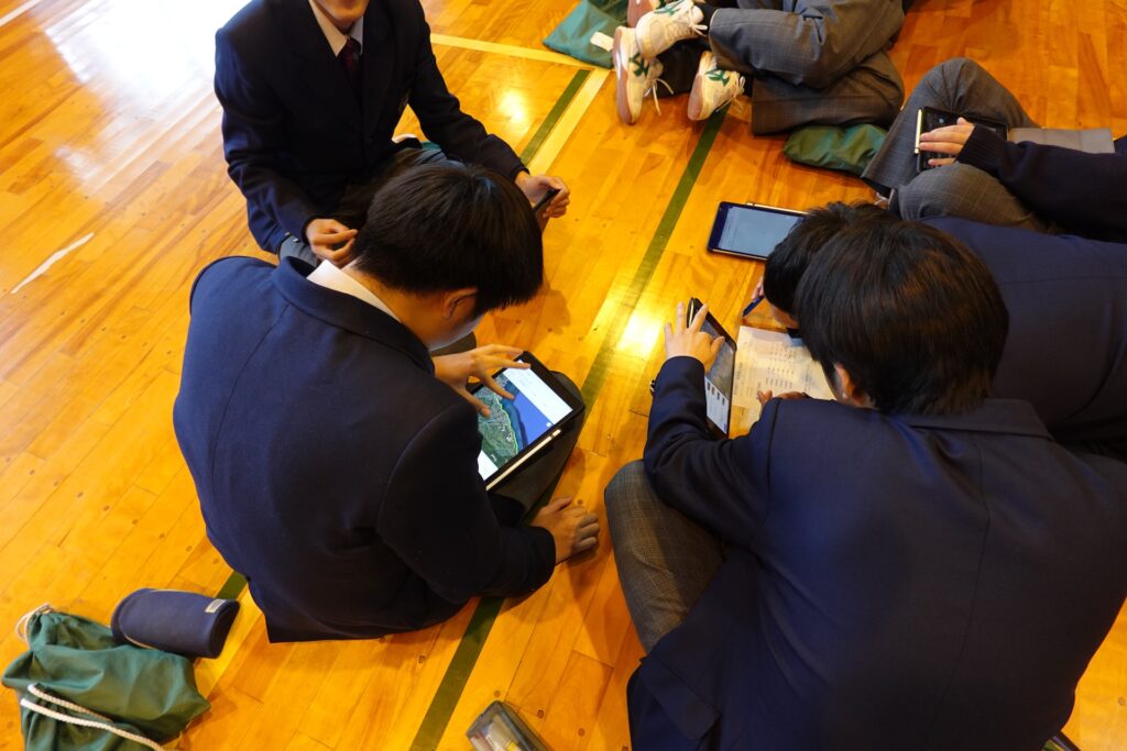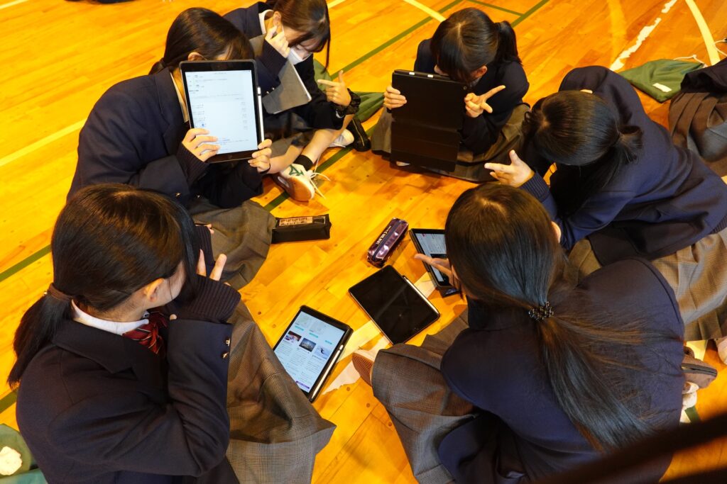 iPadを活用して班別自主研修の内容を調べます