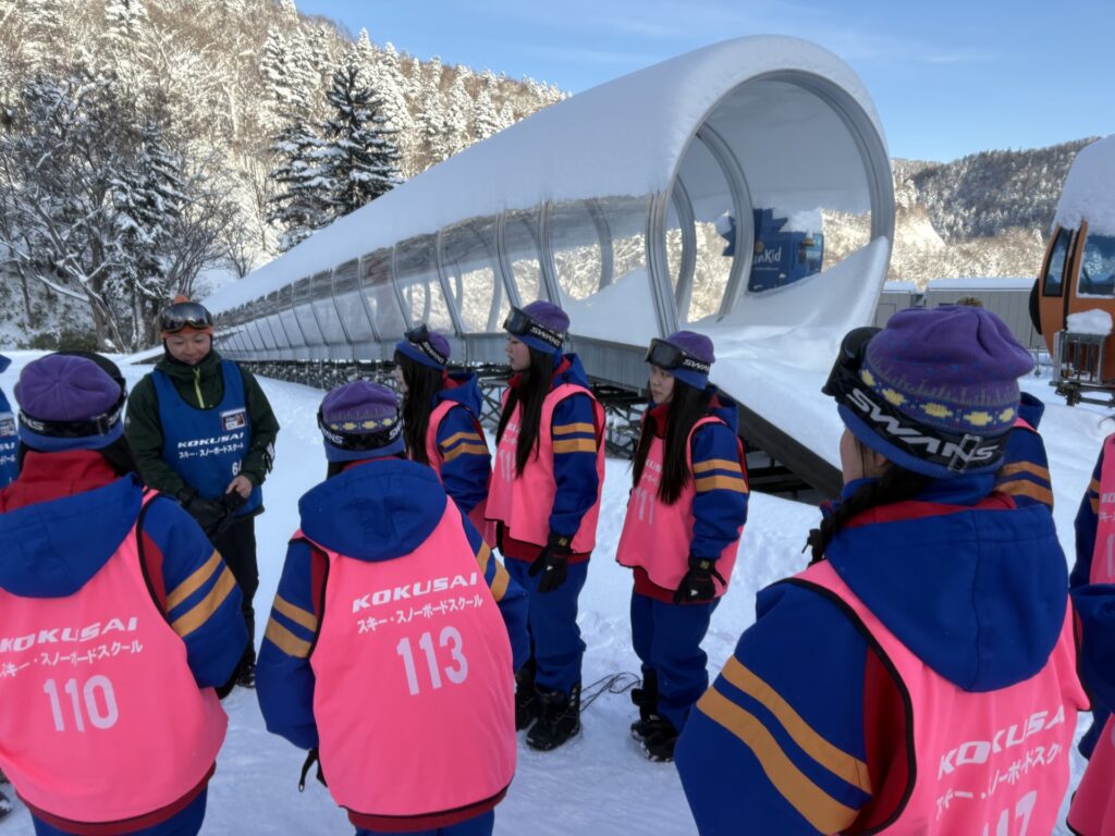 バスで札幌国際スキー場に移動してスキースノボ実習です!