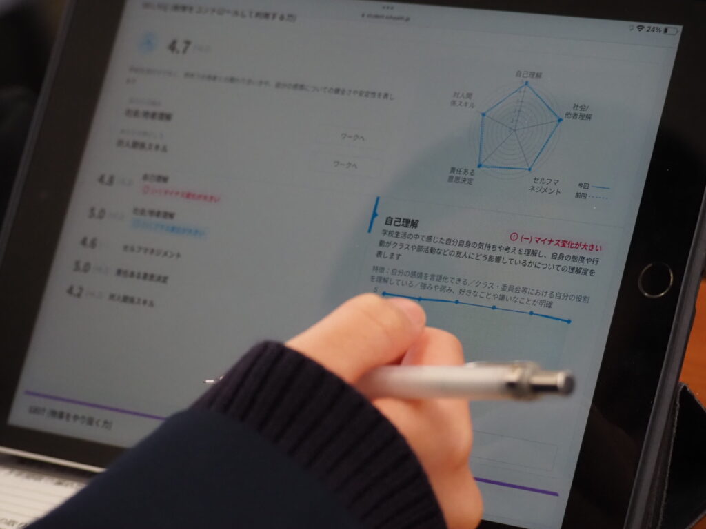 その評価としてキャリア・パスポートで学期ごとに生徒は自分自身の成長をEdvPathという非認知能力診断システムを活用して実施しています