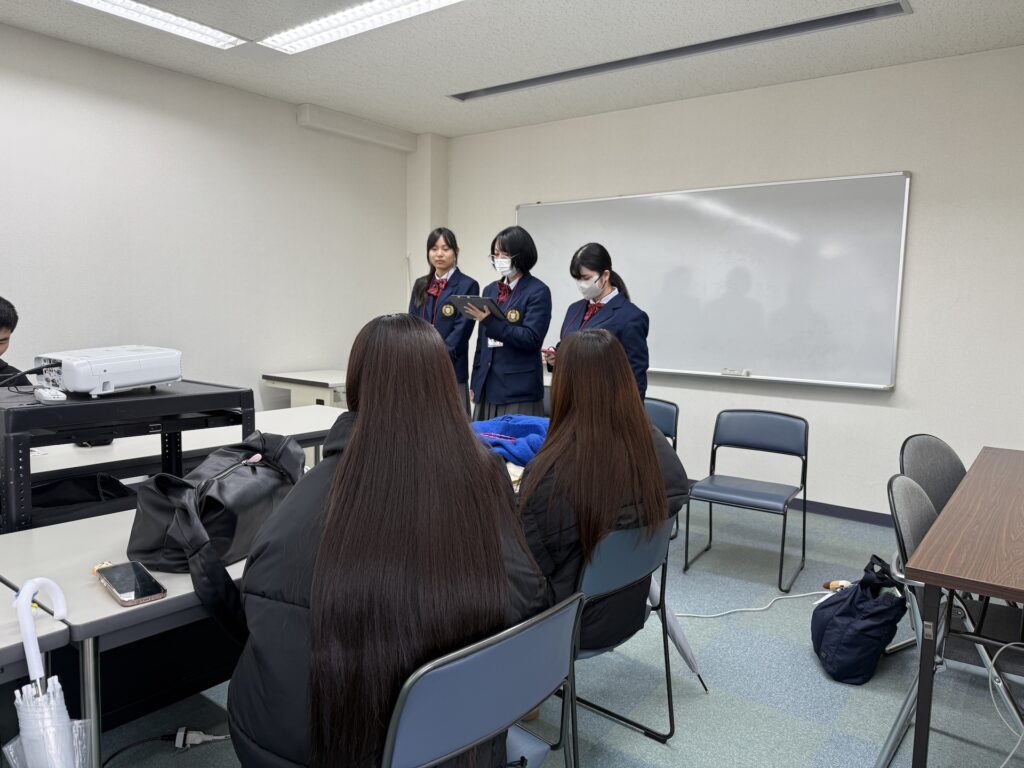 前回の大学訪問と同様にツアーの説明をチラシをもとに実施しました