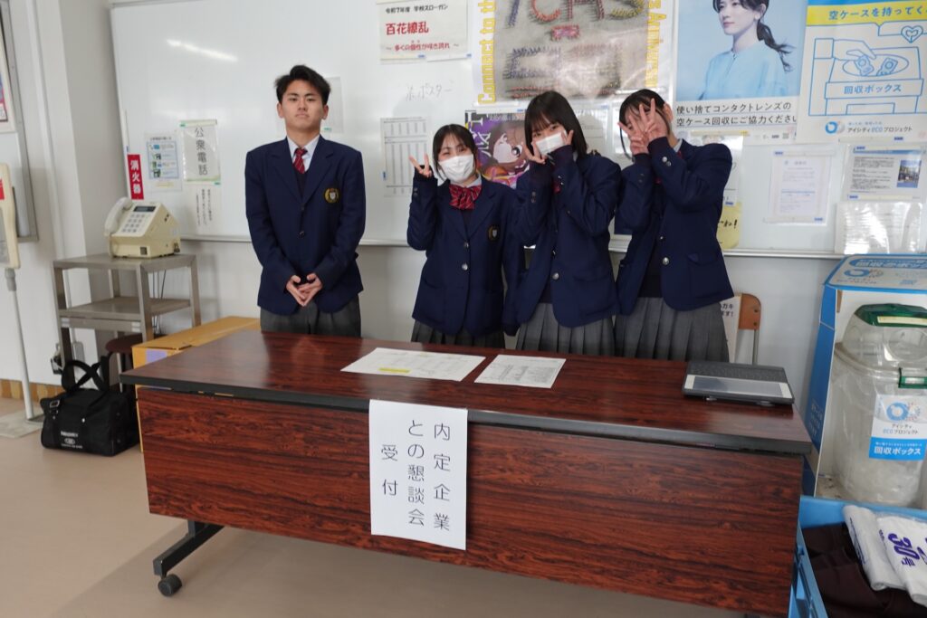 内定をいただいている3年生とその企業の担当者の方との懇談会を本校で実施しました