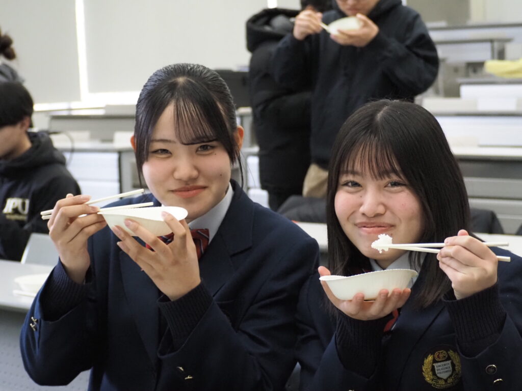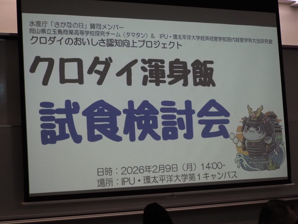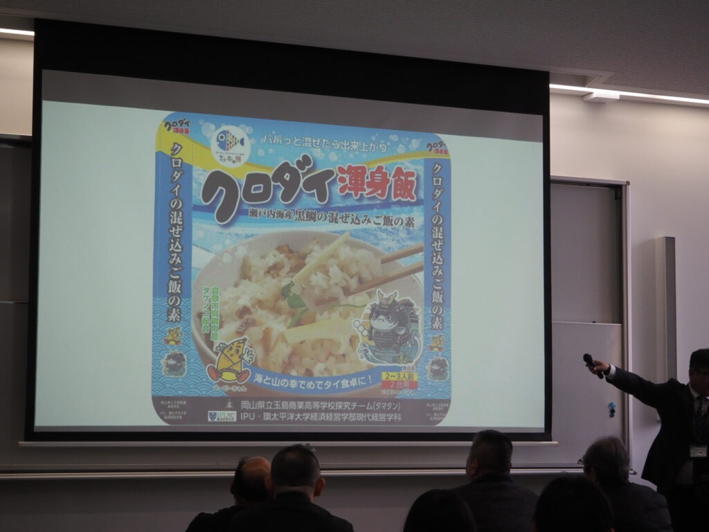 クロダイ消費拡大プロジェクトの成果として商品化された「クロダイ渾身飯」の試食会がIPU環太平洋大学で関係する企業の皆様をお招きして実施されました
