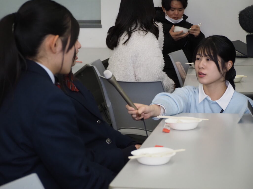 プロジェクトを協働しているIPU環太平洋大学の学生が概要を説明し試作品を試食しました