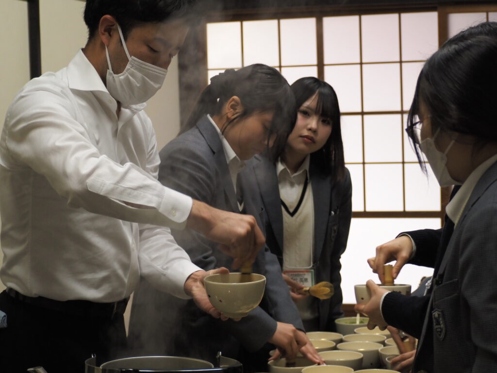 坐禅で心を整えた後に倉敷翠松高校の生徒による茶道のお手前で参加者の皆様をおもてなししました