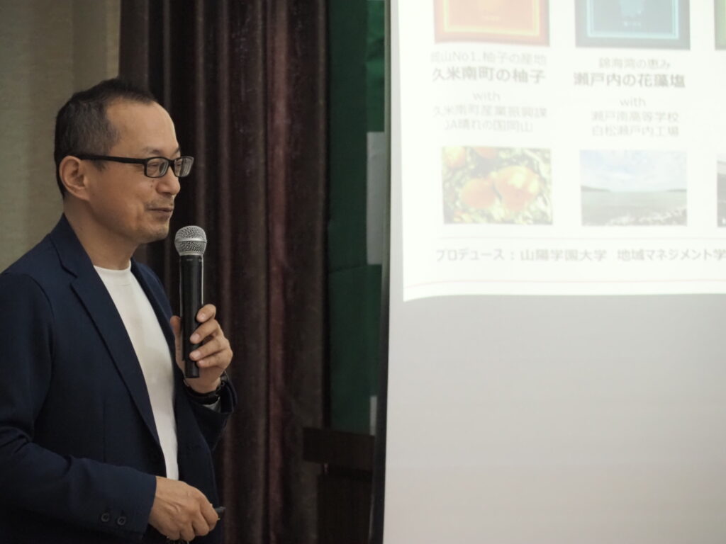 まずは山陽学園大学の神田將志先生に玉島の現状と2つの企業に共通する課題である企業の認知度を高める方法についてご講義いただきました