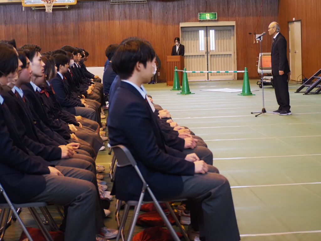 卒業式予行に先立って同窓会入会式を同窓会長 西井弘人 様にご臨席いただき開催しました