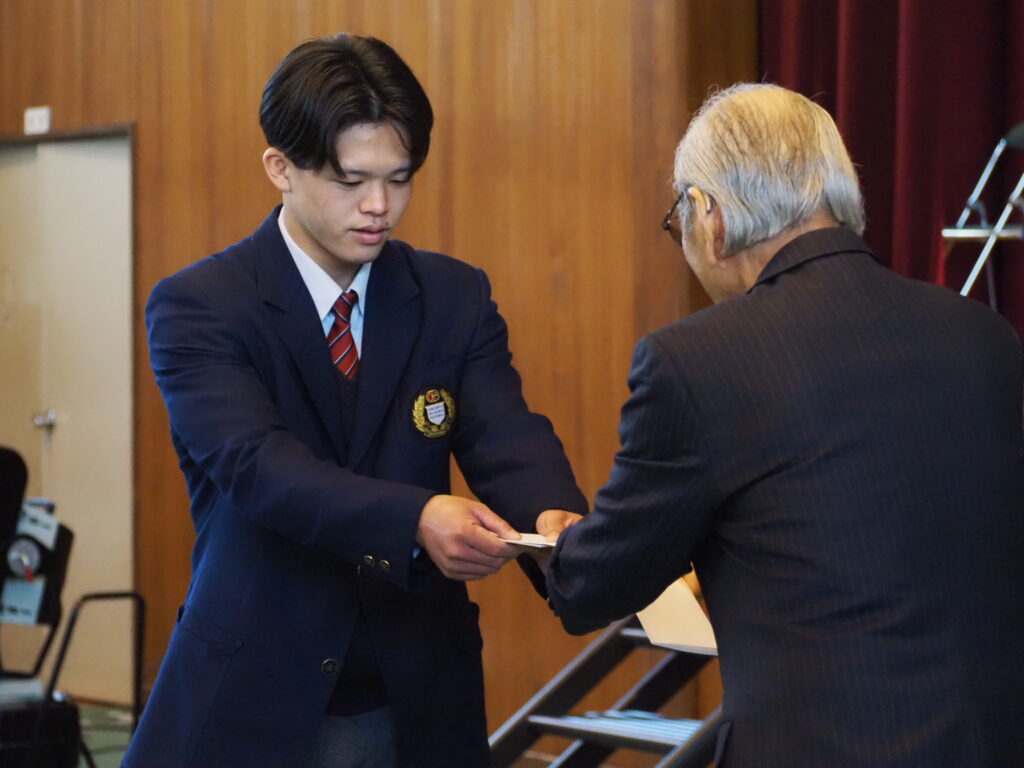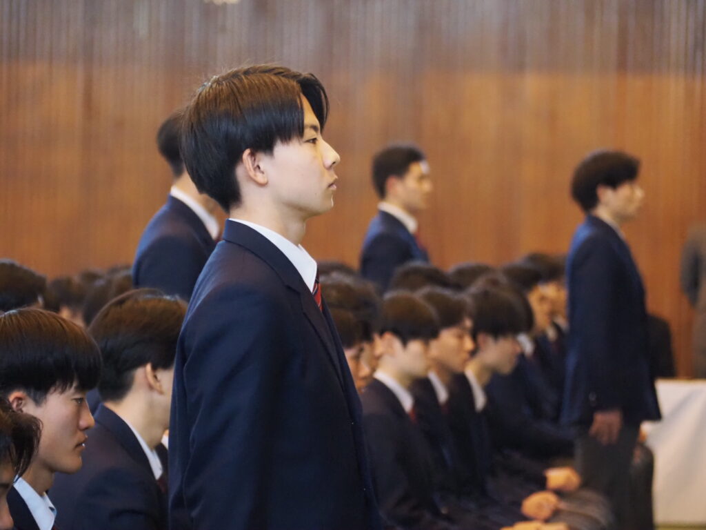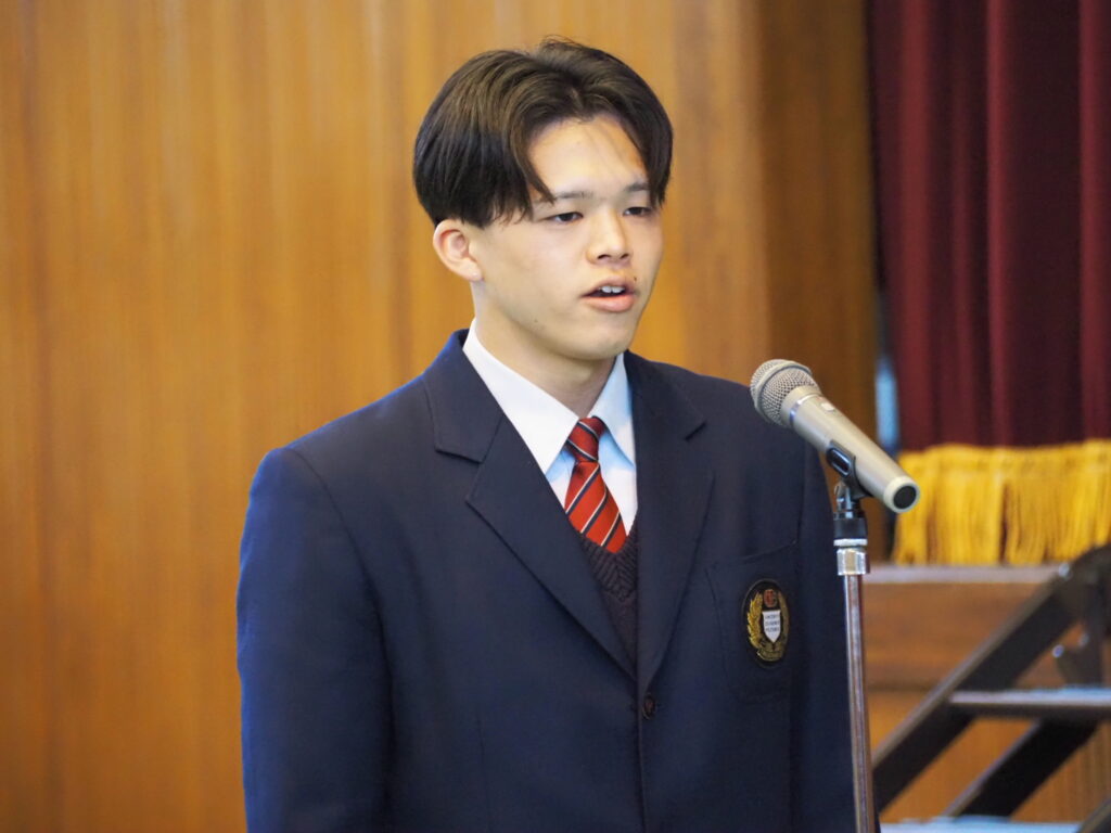 卒業生の代表幹事が紹介され代表生徒は意気込みを発表しました