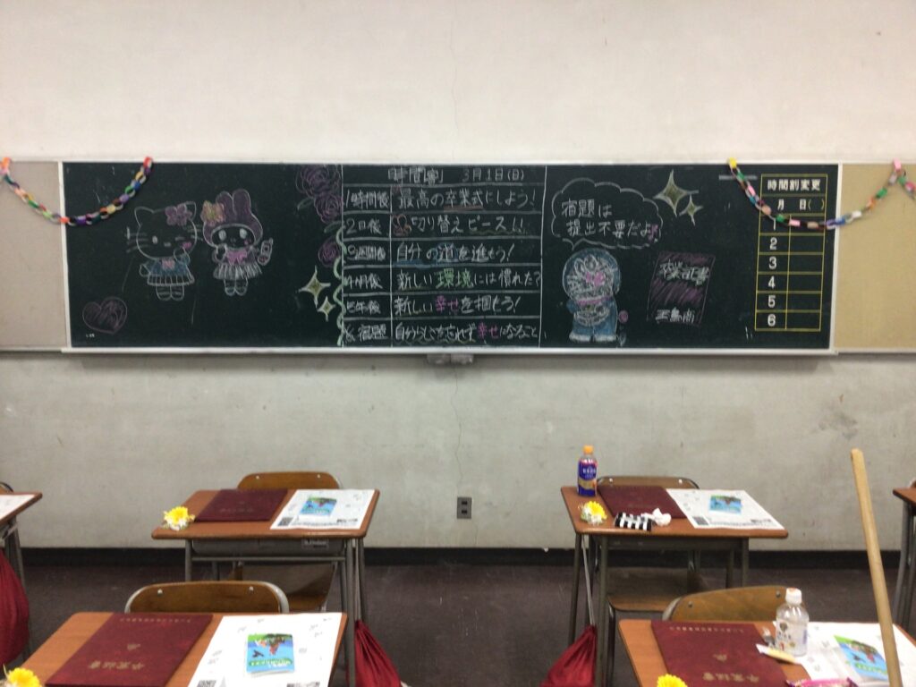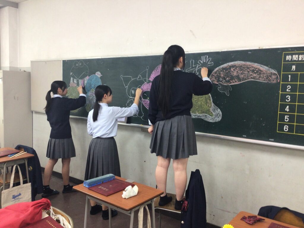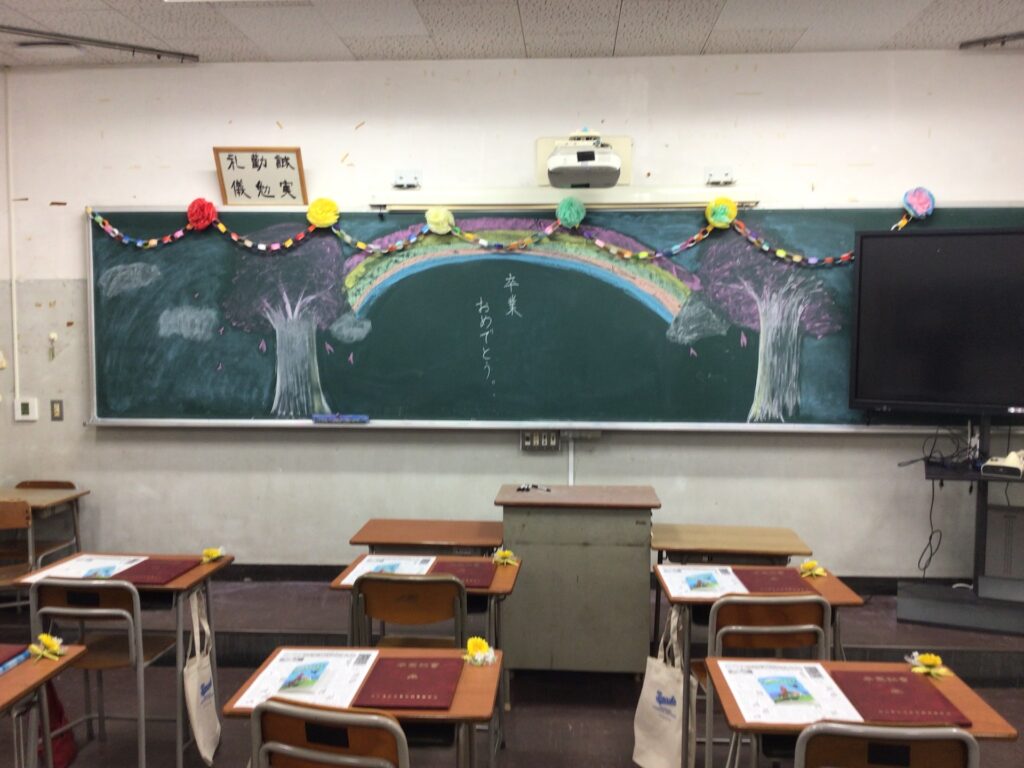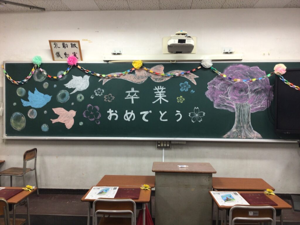 3年生の最後のHRに向けて教室を生徒会と漫画研究部が協力して飾りつけました