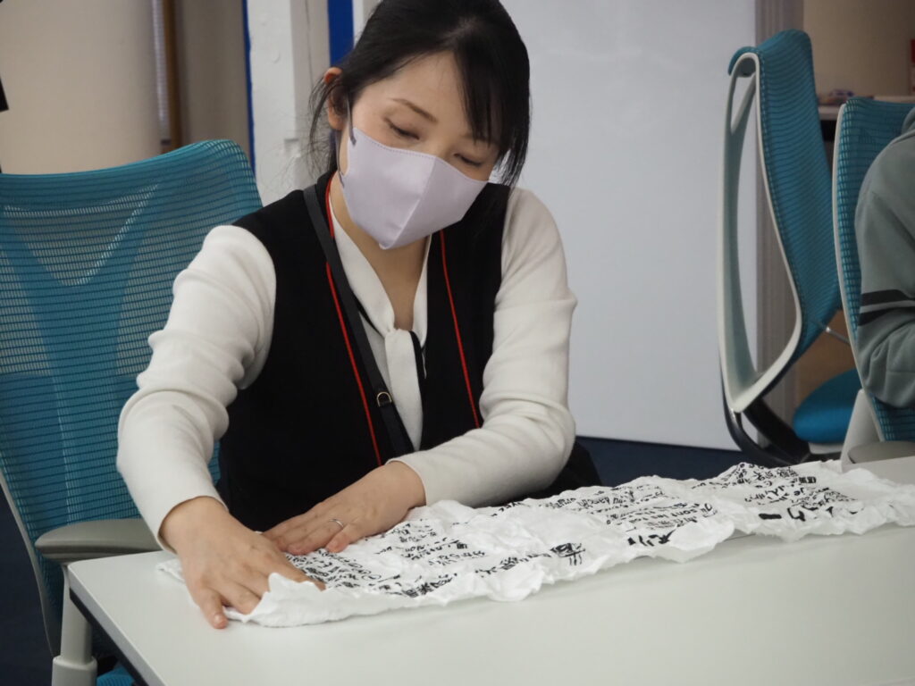 同じく助成金をいただいている高校生・大学生・オブザーバーの大人の方々に実際にタオルを手に取ってもらい使用感やアドバイスをいただきました