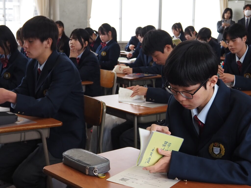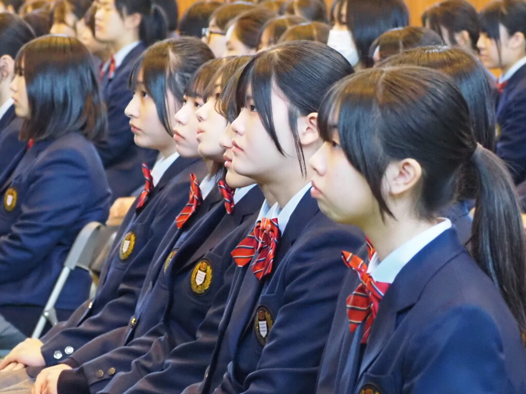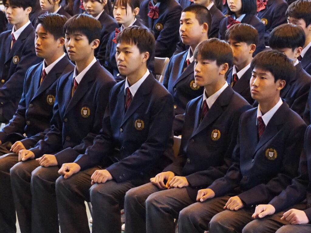 校長式辞では今年度創立100周年を迎える本校へ入学後意識してほしい4つのポイントについてお話がありました