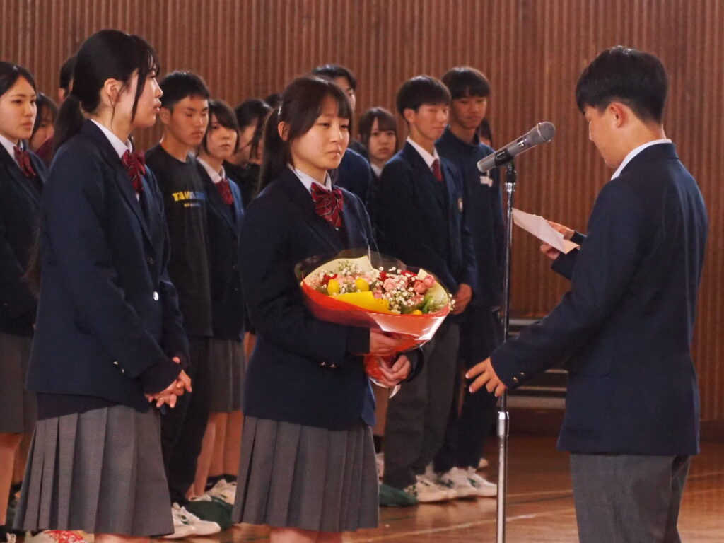 和太鼓部の迫力ある演奏から始まり生徒会長からの歓迎の言葉そして新入生代表誓いの言葉が交わされました