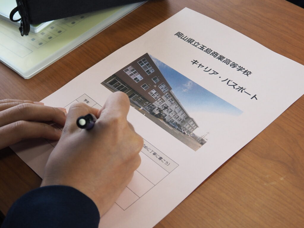 1年生の初回はEdvPathの説明と小学校・中学校の際に作成したキャリア・パスポートを見返して感じたことからこれまでの自分自身のキャリアを振り返るとともに高校生活に向けての決意を記入しました