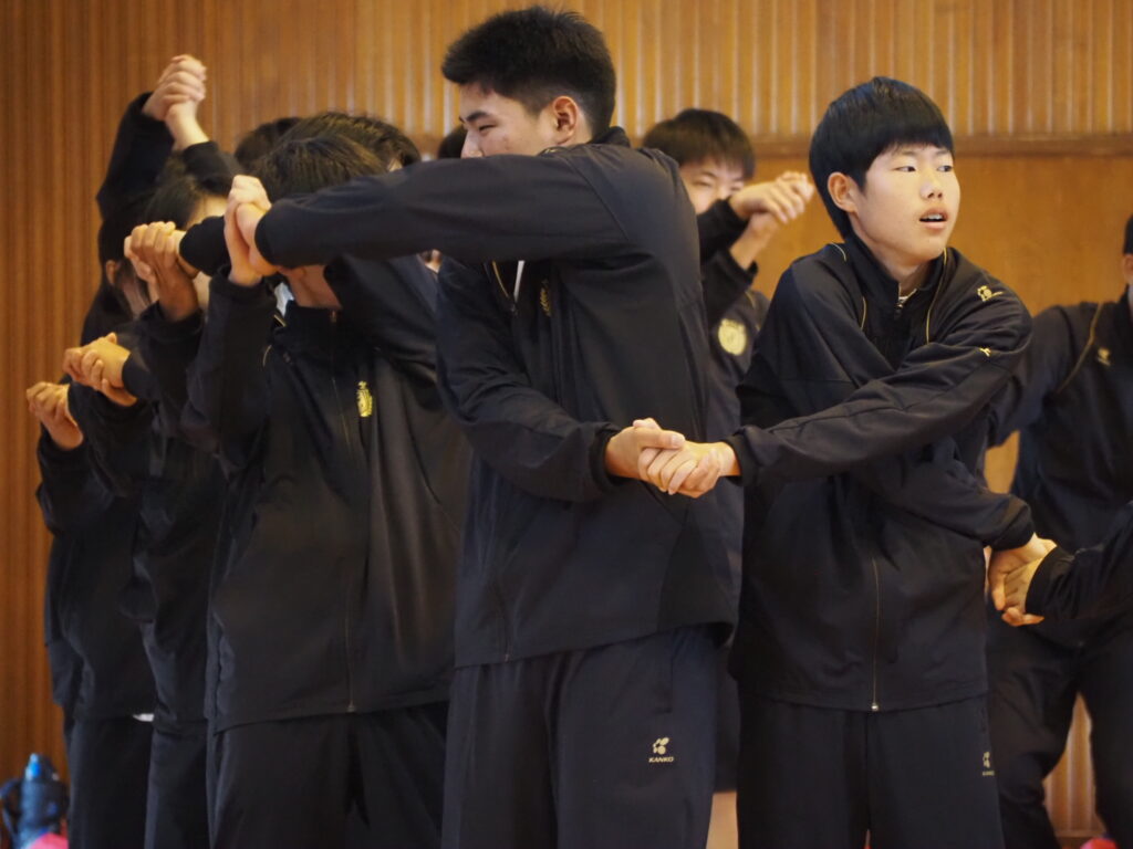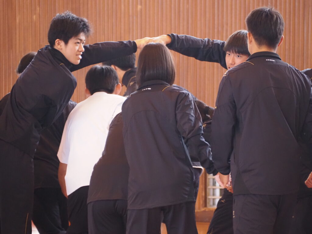 予定されていた遙照山登山が残念ながら足場不良のため中止となってしまったため学校でチームビルディング研修を株式会社NEQLIAS様から講師をお招きして実施しました
