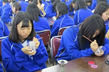 ガラスの里では、サンドグラス作り。初めてするグラス作りにみなさん悪戦苦闘気味。でも、最後は上手にできました! 完成が楽しみです。