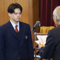 卒業式予行に先立って同窓会入会式を同窓会長 西井弘人 様にご臨席いただき開催しました 卒業生の代表幹事が紹介され代表生徒は意気込みを発表しました 本校HP↓https://www.tamasho.okayama-c.ed …
